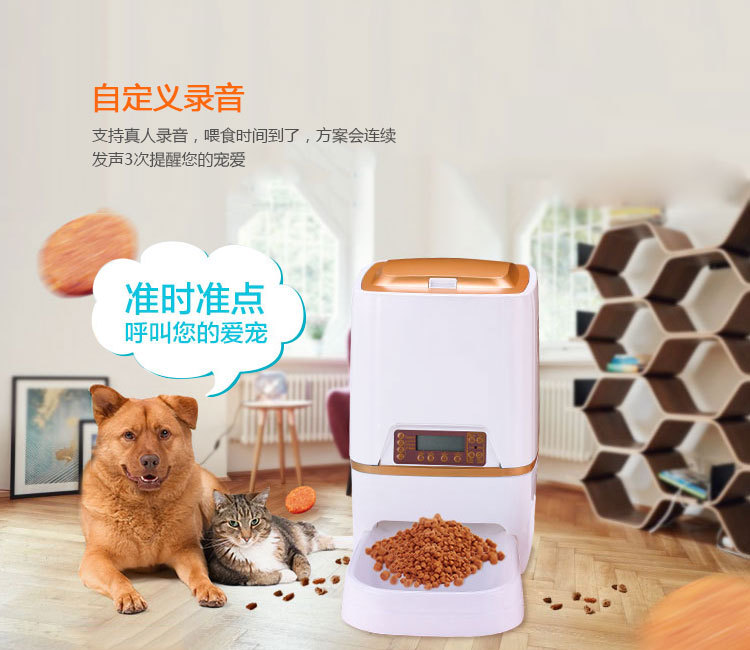 The smart feeder is an instrument that can automatically feed according to preset feeding reminders (timed feeding, manual feeding, recording function, water feeding function, and fresh-keeping function). The pressure sensor is controlled by the wireless network to ensure that each feeding can be timed and quantitative.