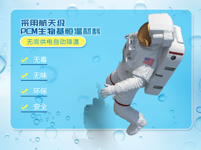 This product is developed by the aerospace field to protect astronauts in the environment of severe temperature changes during space exploration, referred to as PCM material. It is a latent heat energy storage material with temperature regulation function. , lasting constant temperature, non-toxic and harmless, environmentally friendly and degradable.
